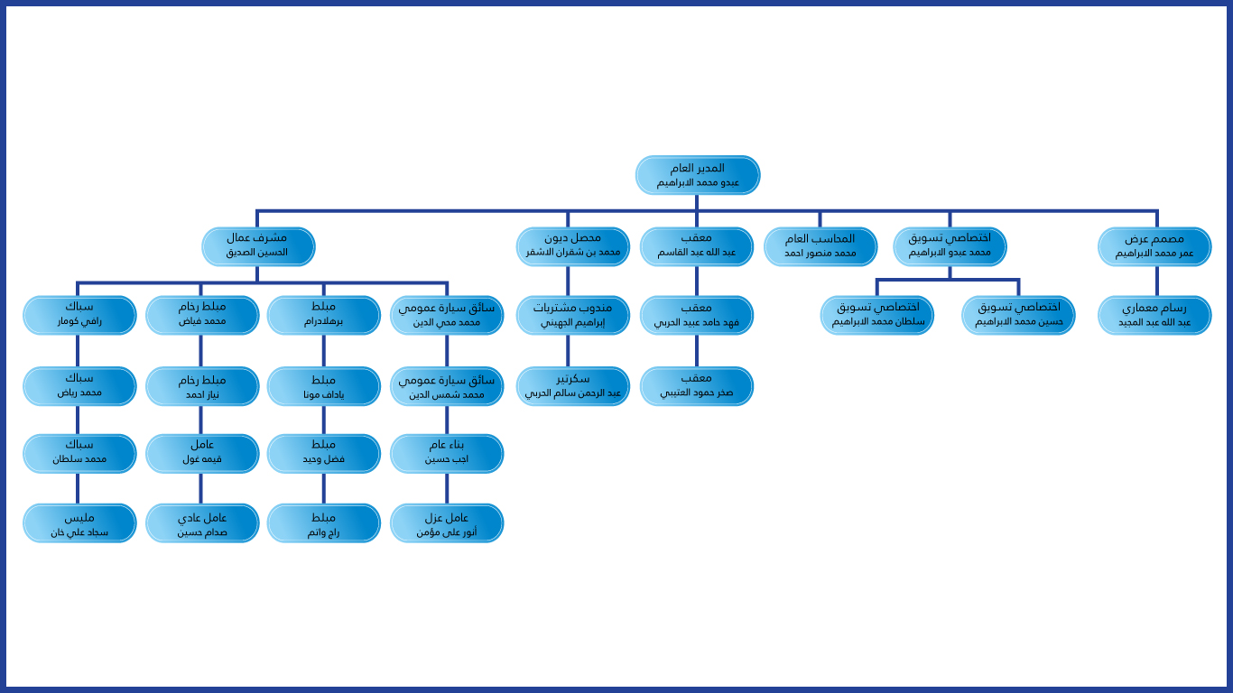 تركز المؤسسة  على بناء فريق جماعي متنوع حيث تضم عدد كبيراً من المهندسين والفنيين المتخصصين في مجال تصميمات باستخدام البرامج الحديثة  ليكونوا الفريق المتخصص العامل في الشركة لكافة المشاريع وأعمال المقاولات والعمليات التي تنفذها المؤسسة، وقد اكتسبت المؤسسة سمعتها في المجال الصيانة وتركيب الكونترات  وذلك من خلال تجاربها وخبراتها الكبيرة والمتنوعة في إنشاء وتصميم مشاريع متميزة وكبيرة، وتهتم المؤسسة بالتنويع في ثقافات وجنسيات العاملين لديها وتشكيل فرق العمل بها ،وقد دعا هذا الى ان تقوم المؤسسة بتطوير كوادرها العاملة في كافة القطاعات بضخ دماء جديدة من ذوي الخبرات العالمية واقامة العديد من الدورات التدريبية المحلية ، وتهدف المؤسسة الى احتلال مرتبة متقدمة حاليا في مجال المقاولات والصيانة وذلك خلال السنوات القادمة إن شاء الله .